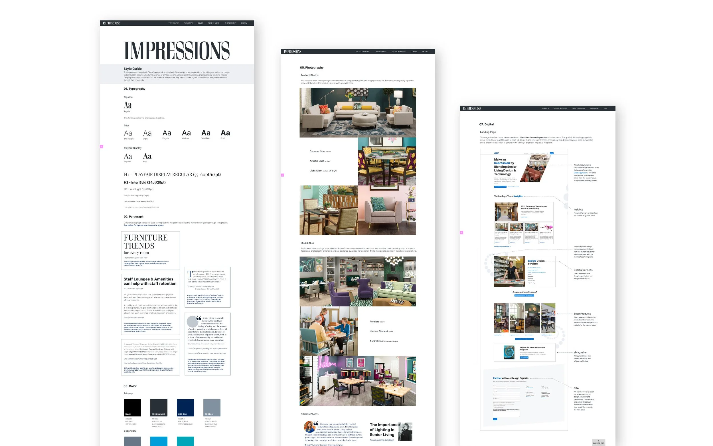 Led the design for the Impressions campaign, responsible for developing the brand's visual identity across print and digital channels. Provided art direction for 3D renderings and product photo shoots to ensure cohesive brand presentation.